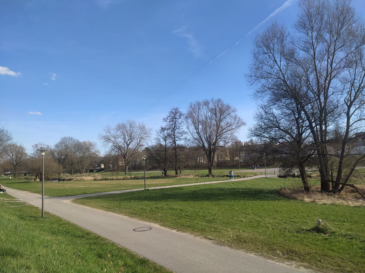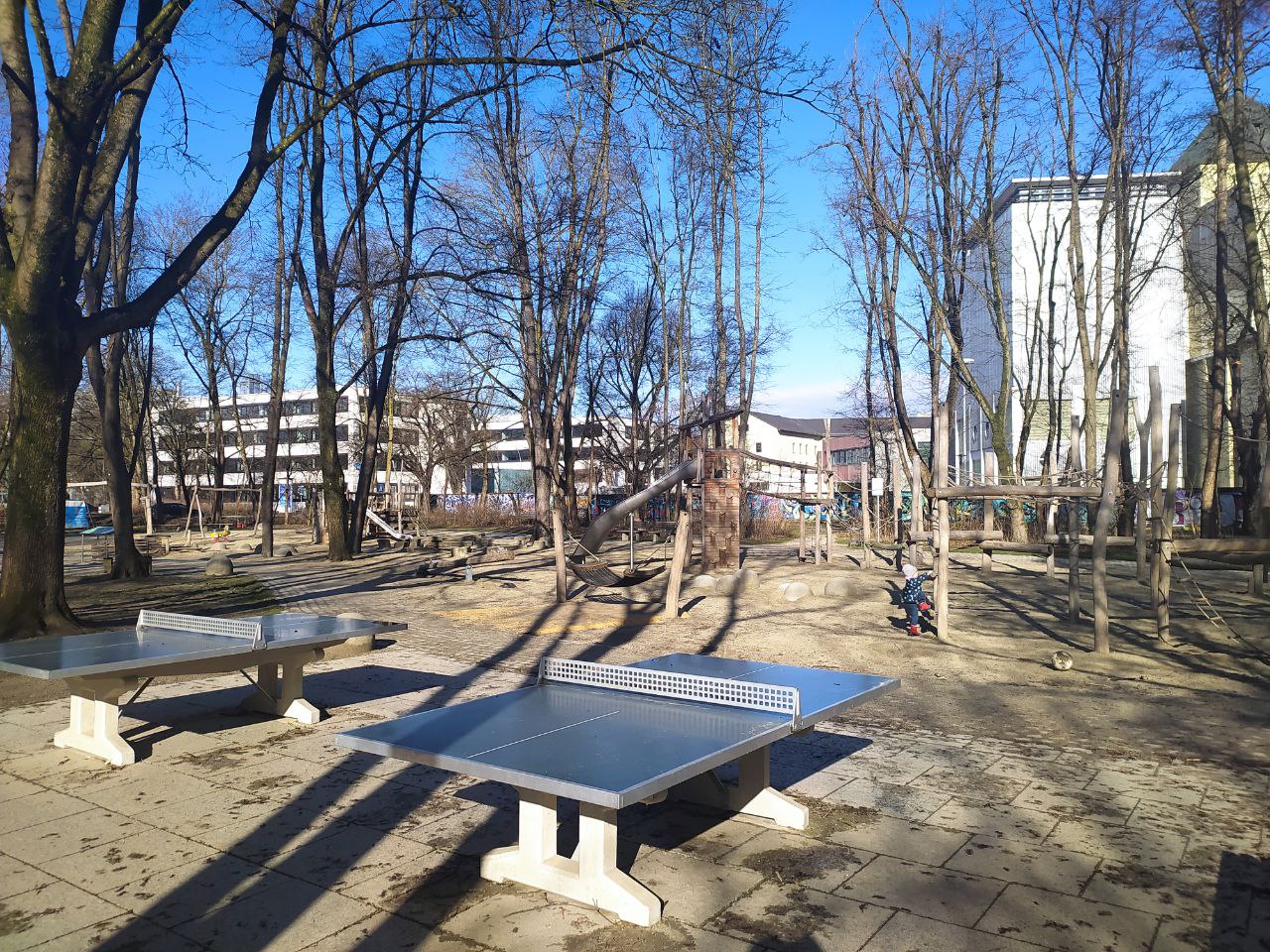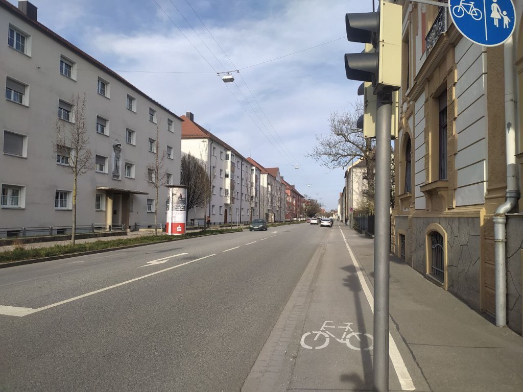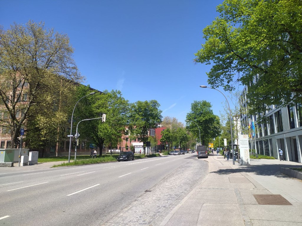 Rundherum wechseln sich Bistros mit einem Ärztehaus, einem Fitnessstudio, einer Schneiderei oder auch einer Tango-Tanzschule ab. Behörden wie das Sozialgericht oder das Wasserwirtschaftsamt sind in schönen alten Villen untergebracht. Wer hier etwas zu erledigen hat, wird es zu schätzen wissen, wenn er einen der raren freien Parkplätze ergattert. Ansonsten hält auch der Stadtbus auf Höhe des Ärztehauses.