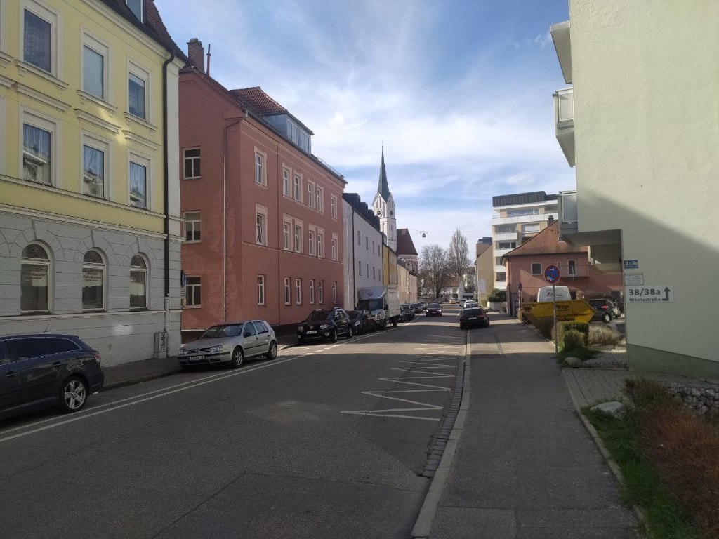 Vom Hauptbahnhof kommend und die Mainburger Brücke überquerend gelangt man in die Nikolastraße, die sich gleich bei der Einfahrt von ihrer schönsten Seite zeigt: Mit der katholischen Pfarrkirche St. Nikola, die dem Stadtteil seinen Namen verleiht.